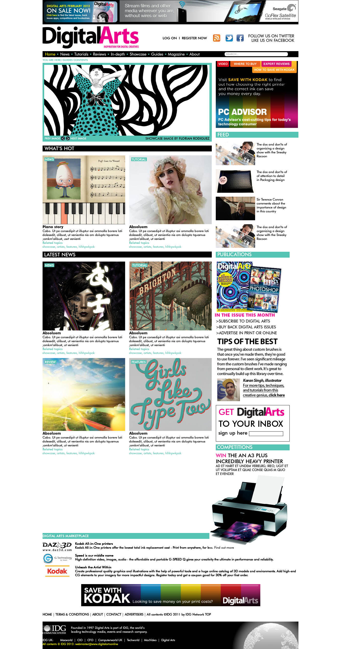 The brief was to improve the old Digital Arts website. A neglected and cluttered text-heavy brown and beige website in desperate need of some TLC. Priorities included redesigning the Nav, optimising the user experience and maximising the two business metric; site visits, and ad cadence.