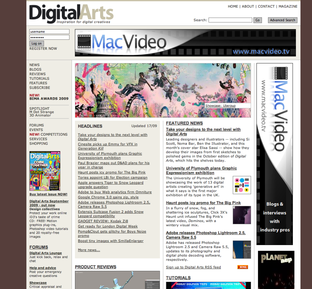 Digital Arts is an online and printed publication for Digital Creatives. Here is a selection of print and digital work from my role as Art Editor.