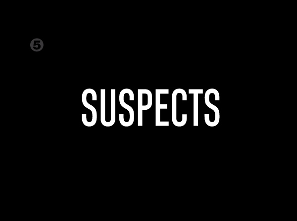 Logo and type design for the Channel 5 TV series Suspects. The commission was for the logo and type design of an uppercase small caps narrow sans serif.